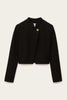 The Ba&sh Chroma short asymmetrical jacket stands out with its asymmetrical straight silhouette, tailored suit style with shoulder pads, and detailed golden buttons for a stylish touch.