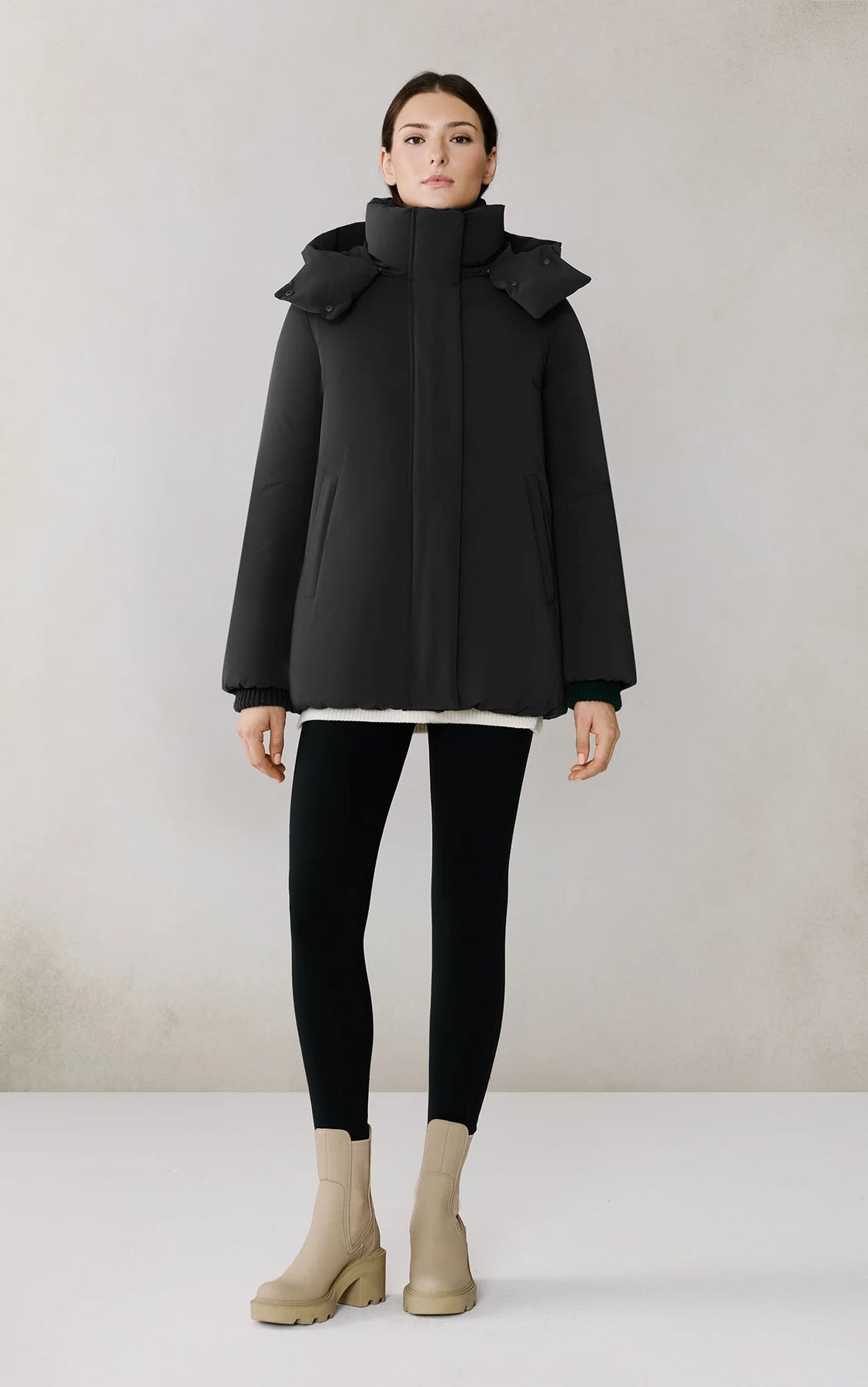 The Soia & Kyo Elmira Cocoon Down Jacket is perfect for chilly days when you want to stay cozy and stylish. Featuring an elastic balloon shape and a removable hood, it’s packed with high-quality down to keep you warm even in -25 °C. Soft details like a chunky knit inner collar and storm cuffs add comfort, while fleece-lined pockets and clean hardware give it a sharp finish.