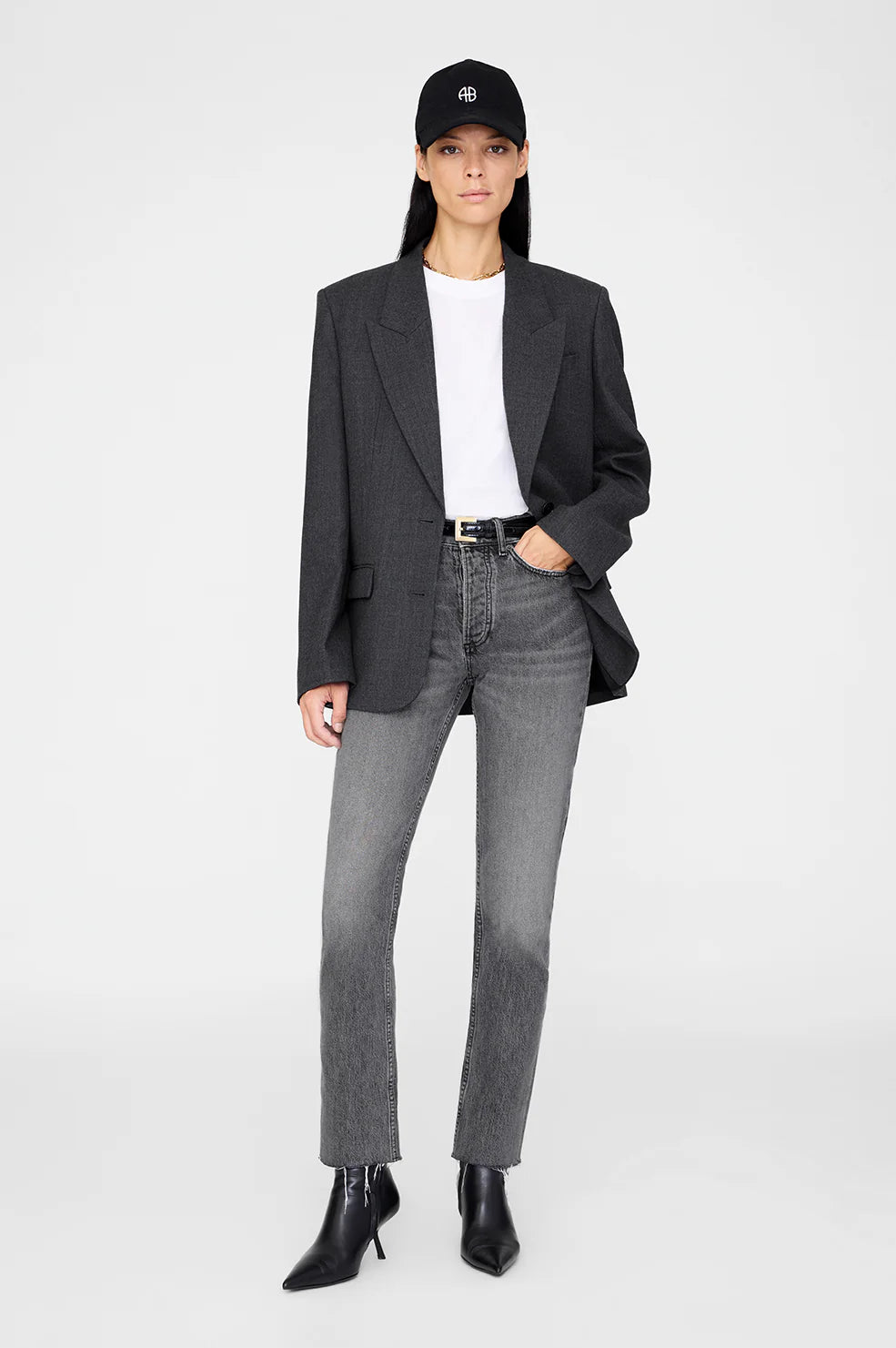 The Anine Bing Jeremy Baseball Cap comes in a classic black denim color for daily wear. It includes an adjustable strap at the back to ensure a snug and comfortable fit. Subtle tonal embroidery is placed at the front center and back, adding a low-key branded detail.
