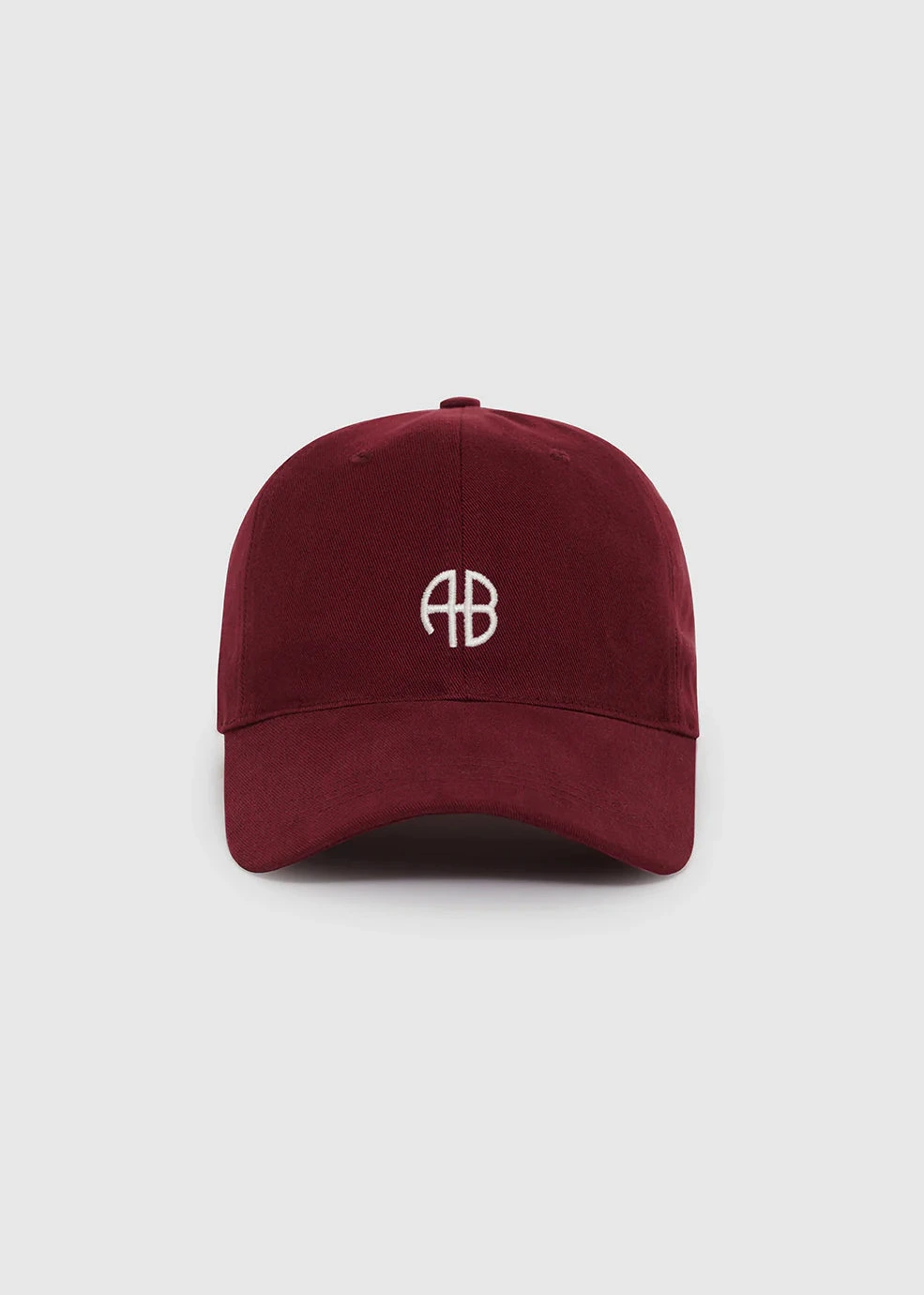 The Anine Bing Jeremy Baseball Cap comes in a classic cabernet color for daily wear. It includes an adjustable strap at the back to ensure a snug and comfortable fit. Subtle tonal embroidery is placed at the front center and back, adding a low-key branded detail.