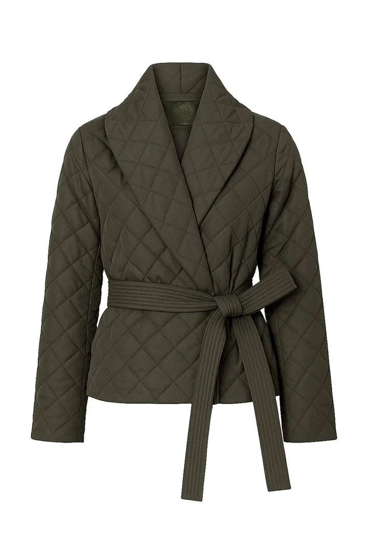 The Marie Oliver Lark Jacket combines style and practicality with ease. With a shawl collar wrap front and a trapunto stitch tie belt, this jacket puts a fresh spin on the classic wrap coat with its cropped hem. Inspired by the English countryside, its rich army green color brings a unique, versatile touch perfect for outdoor days this season.