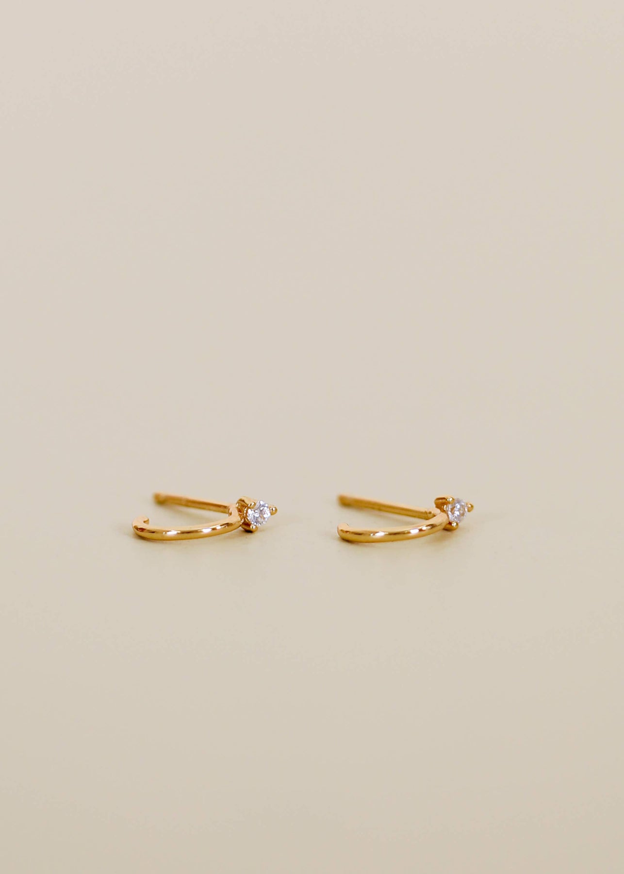 Our smallest hoop earring features a straight-back post with a mini cz that adds a pop of color. The hoop hugs the ear and can be worn anywhere. Tarnish Free - Long lasting protective coating safeguarding your jewelry from sweat, water, and more. Sterling Silver Posts – 18K gold plating over brass Hypoallergenic – Lead Free 2mm white CZ stone 7mm hoop opening