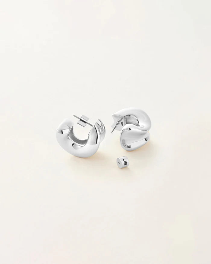 A chunky, mid-sized pair of hoops featuring sculptural curves and a rounded tail, as seen on Hailey Bieber and Audrey Plaza. Despite their bold body, they are lightweight, thanks to a hollowed out design. I