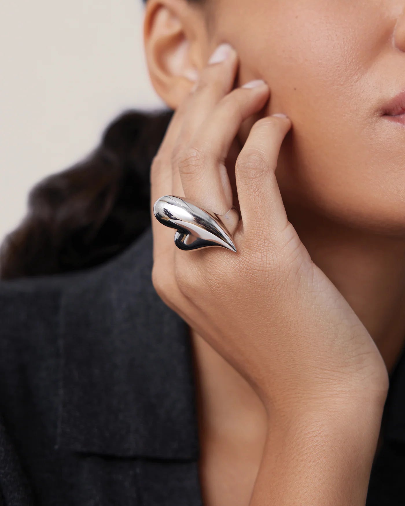 A sculptural heart silhouette rises boldly from the band in this striking Jenny Bird ring. Crafted in lustrous 14k gold with a high-polish finish, this piece combines dramatic design with everyday wearability—the water-resistant construction means you can keep it on through daily activities. A timeless addition to any jewelry collection.