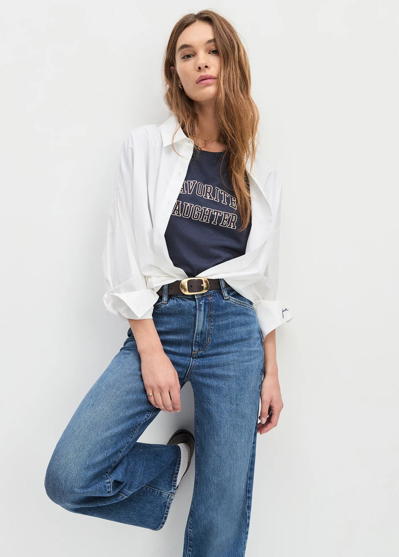 So there's no confusion. This classic cut tee says it all--simply styled in a tri-blend cotton with a cropped fit. Wear it to run errands, style it for a Friday night and rock it at the next family reunion.