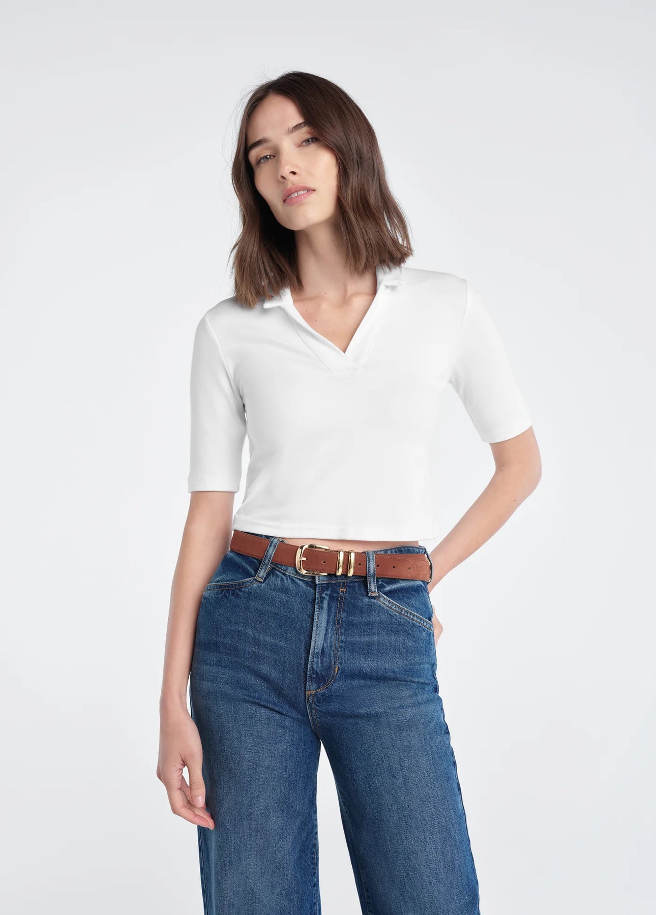 Favorite Daughter The Reading Polo combines timeless style with thoughtful design details. The flattering 3/4-length sleeves and low-V neckline create an effortlessly chic silhouette that works with virtually any outfit. This subtly redesigned classic polo strikes the perfect balance between polished and relaxed, making it an essential piece for your everyday wardrobe. Versatile enough to dress up or down, it's the kind of piece you'll reach for again and again.