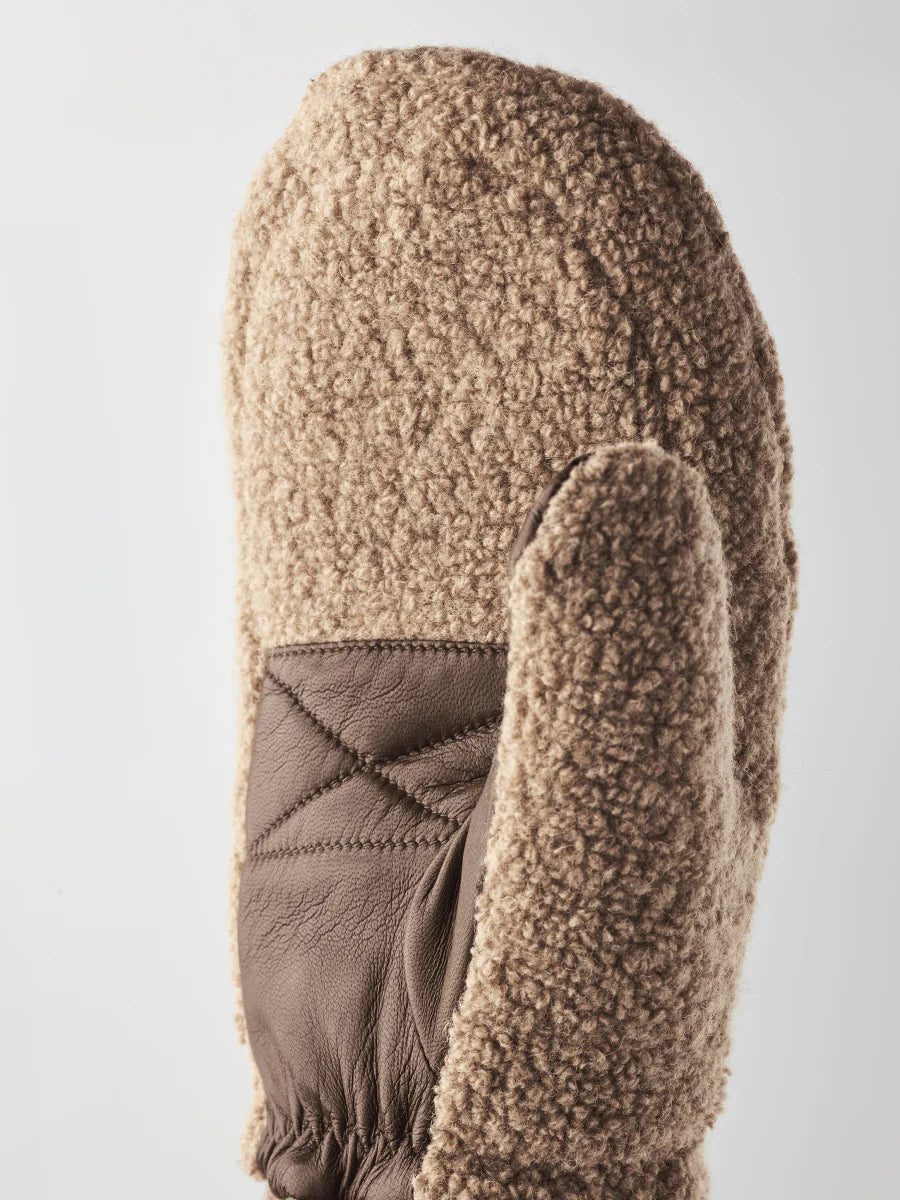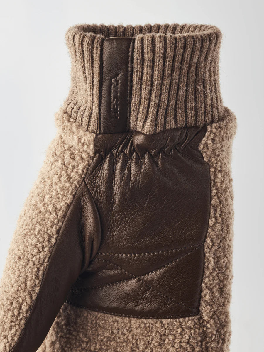 A soft, warm mitten with Primaloft Gold that insulates with a light, down-like feel. A beautiful everyday fashion accessory for the style-conscious, sewn in fluffy wool/mohair teddy fleece with palm and details in Italian lamb nappa. A fleece lining and ribbed cuff add to the sense of comfort. Perfect for chilly days in autumn and winter and equally attractive for a dressier look and as part of a more laid-back outfit.