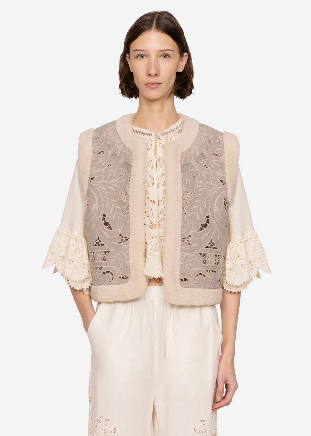 Designed by Monica Paolini and Sean Monahan at their Canal Street workshop in New York, Sea offers modern separates and feminine dresses with a twist. The duo’s line is perfectly pitched between downtown cool and uptown polish. Peplum shift tops, collared lace blouses and cropped trousers underpin the collection.