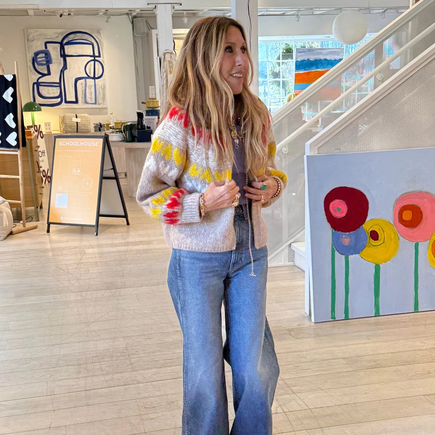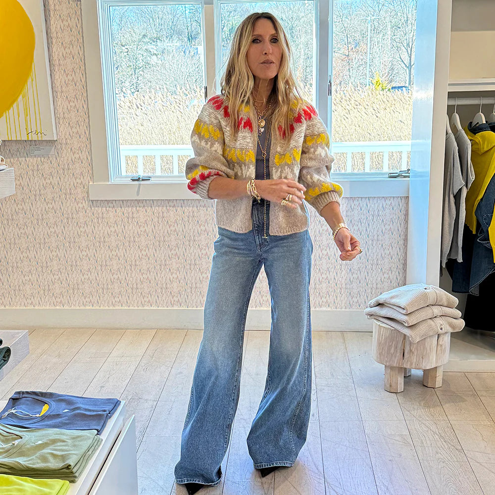 A tribute to Kerri Rosenthal's beloved childhood fair-isle sweater, the Sierra Ker Isle Cardigan showcases her original artwork in a hand-knit pattern created by artisans in Peru. The relaxed silhouette works with jeans and a simple tee for everyday wear, or layer it with the matching beanie for mountain-ready style. Timeless design meets personal storytelling.