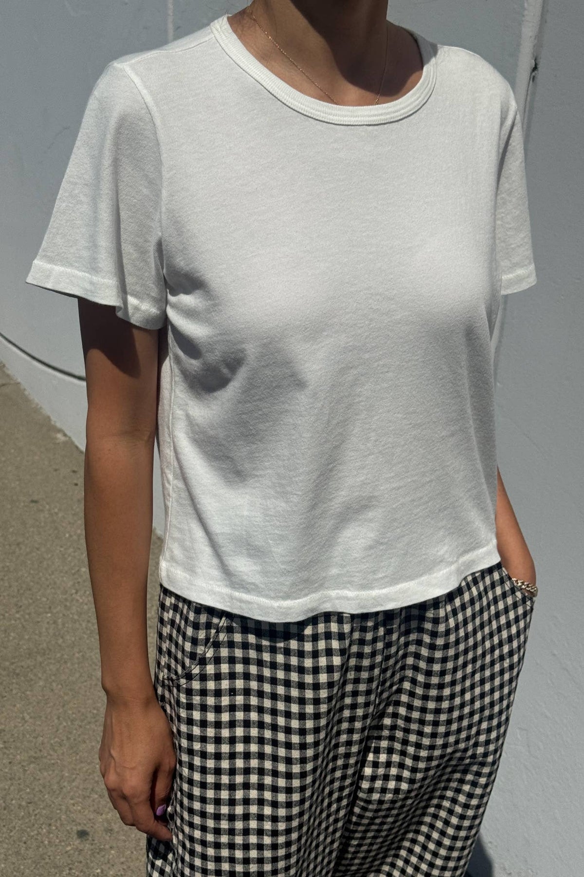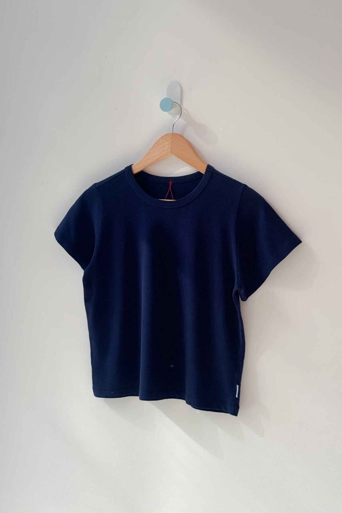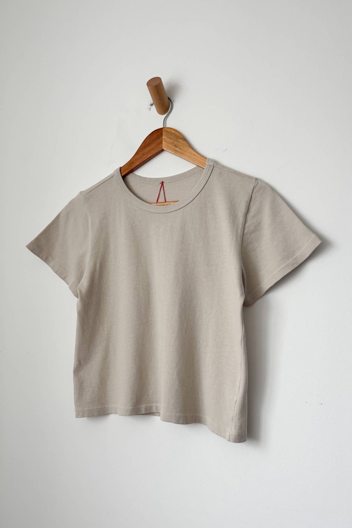The quest for the perfect tee ends here. The first of its kind, The Little Boy Tee uses a heavier-weight 100% cotton premium jersey blend to give it a snug yet flattering fit with just the right amount of stretch. Its suitable cropped length makes it easy to pair with any high-waisted bottoms. Consider this little tee the perfect piece to remain a cherished part of your wardrobe season after season We used the softest local 100% cotton premium jersey. The dying and washing process gives each garment unique character. Please allow for slight color and fit variation for each garment.
